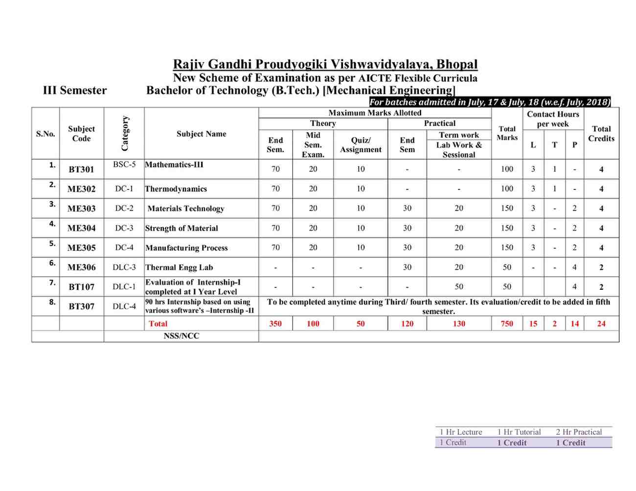B.Tech Course Scheme