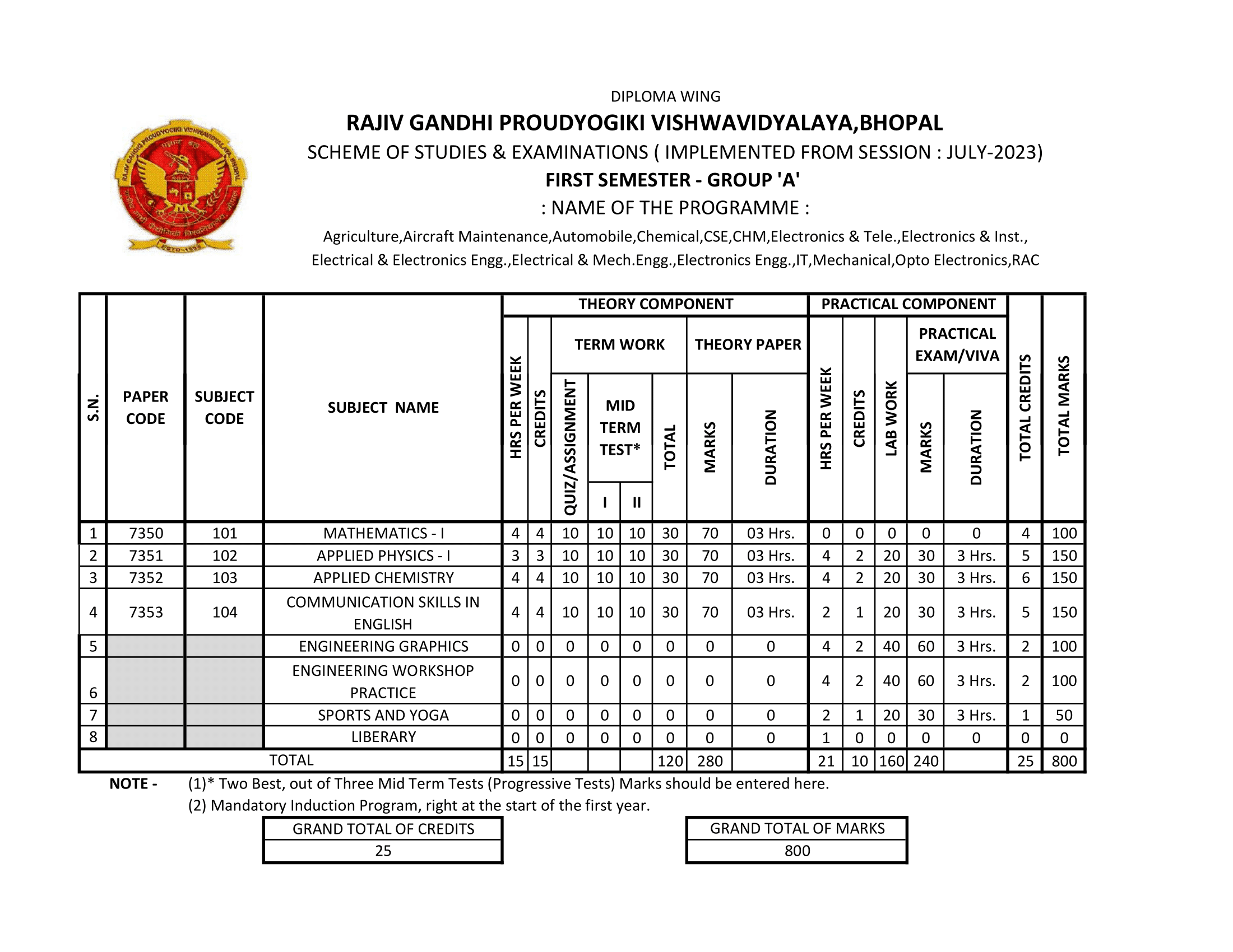 B.Tech. Schemes And Polytechnic Scheme